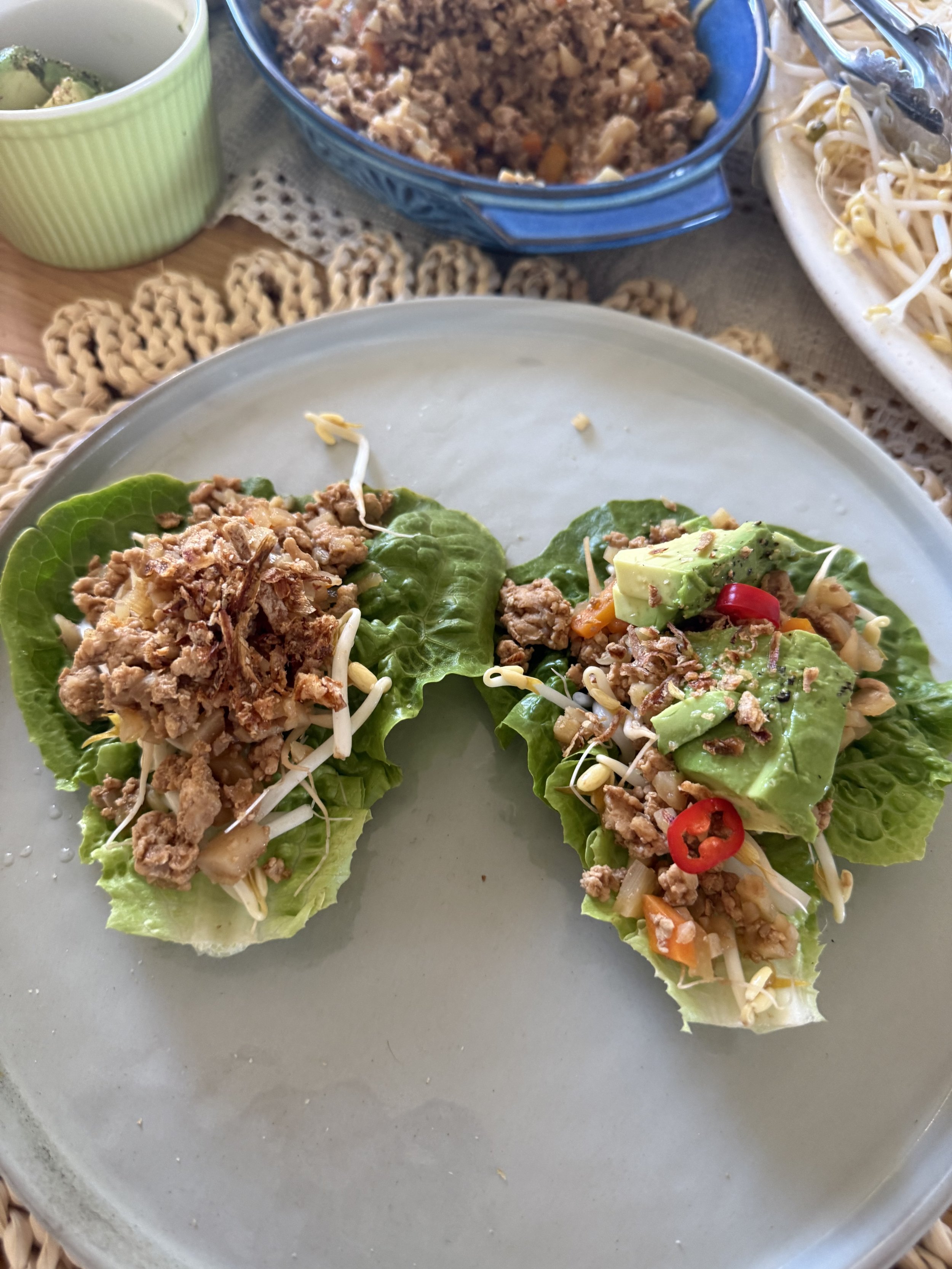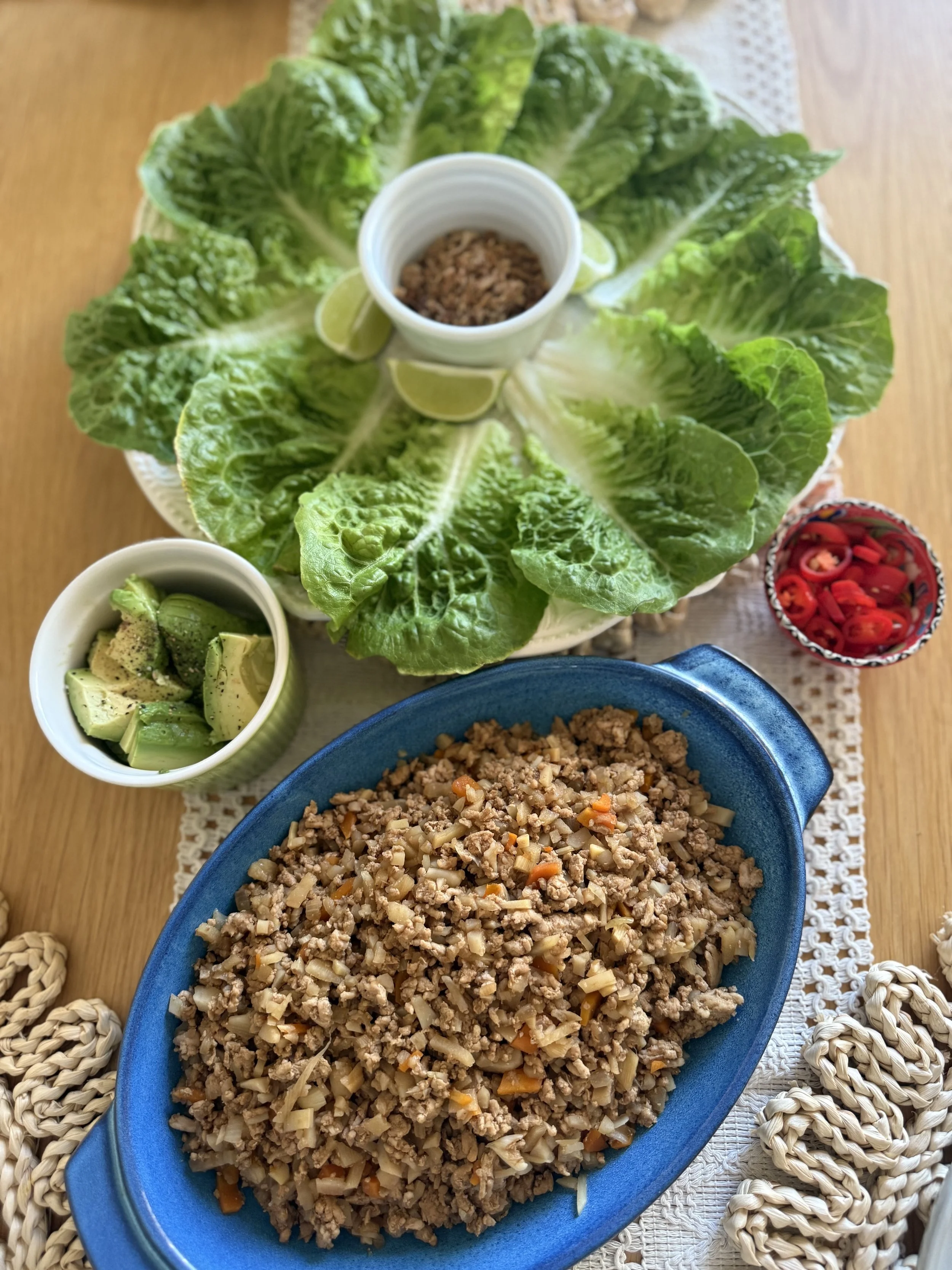 Serve everything in your lettuce cups and squeeze lime over and add your toppings and enjoy!