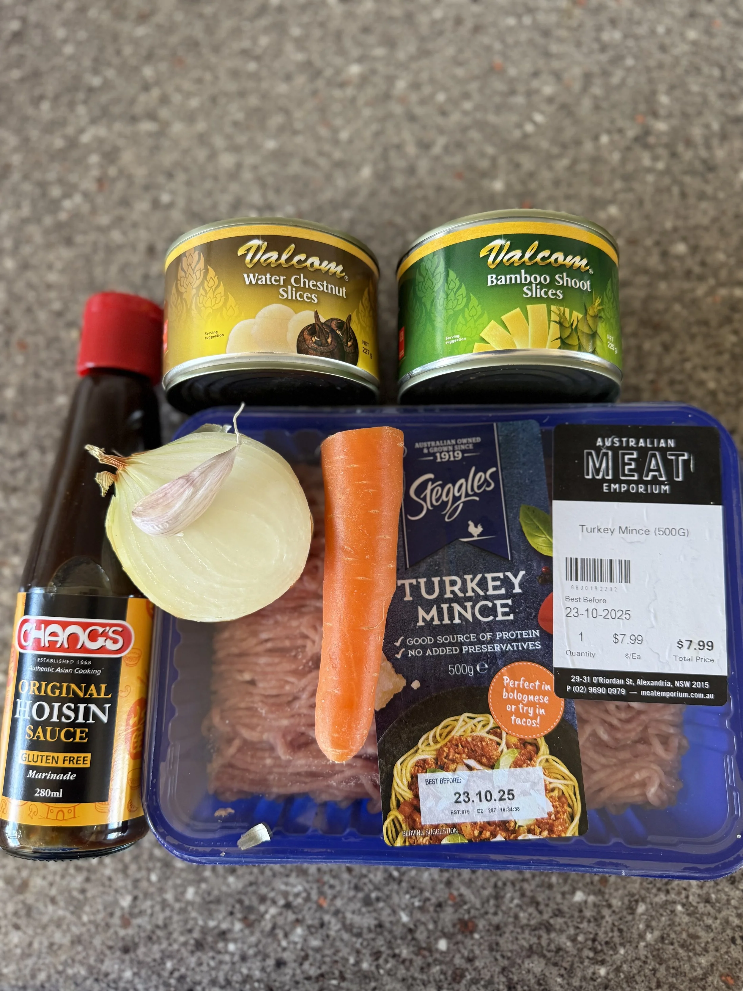 1 pack of Turkey mince (can use chicken or pork mince as an alternate)
